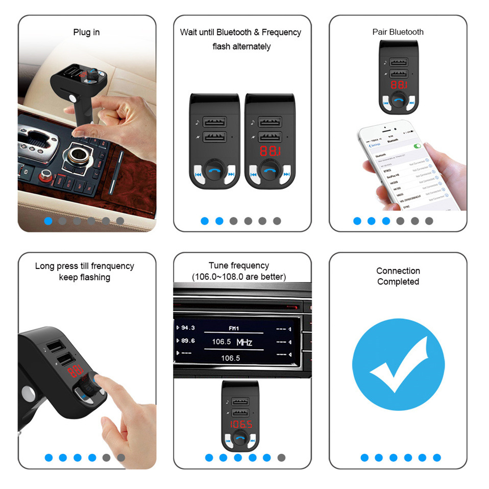 1.Wirelessly transmits phone call & music to the car FM stereo system