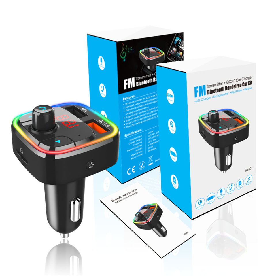 Universal Car Player Dual USB Car Charger Bluetooth Receiver FM Transmitter with RGB Light and Voice Assistant